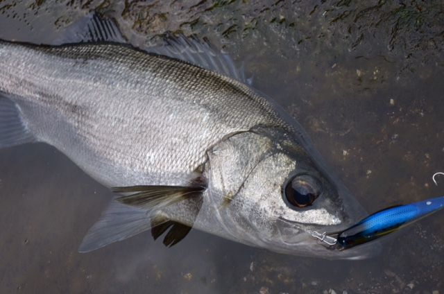 にてヒラスズキをキャッチ。