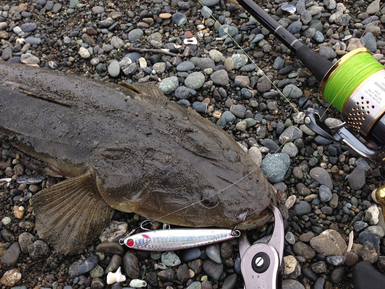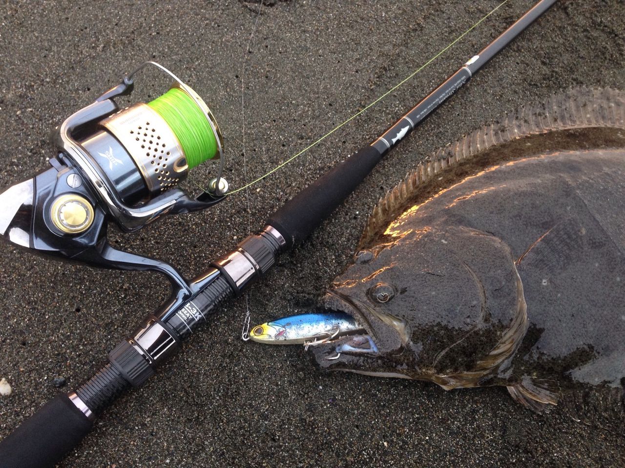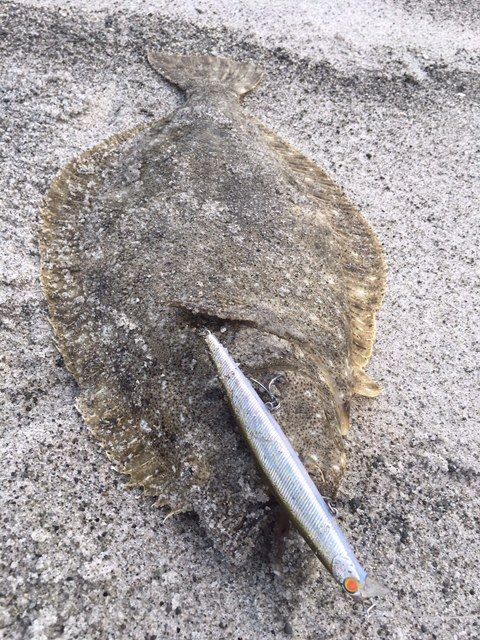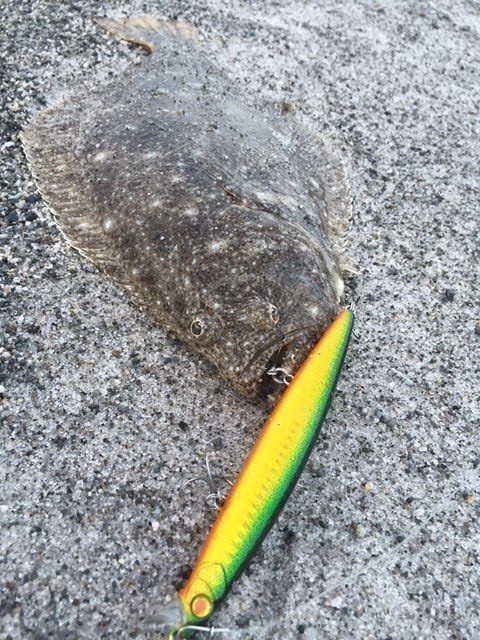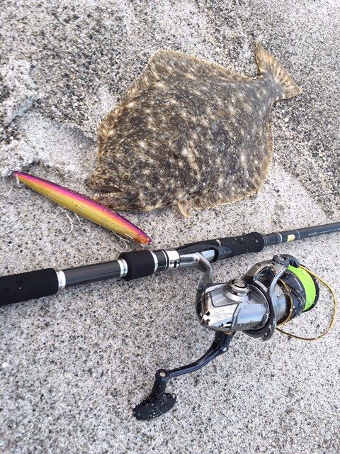 テールフック一本だけにかかってたから、狙い通りだったと思います。連日好調の湘南サーフのフラットフィッシュ。