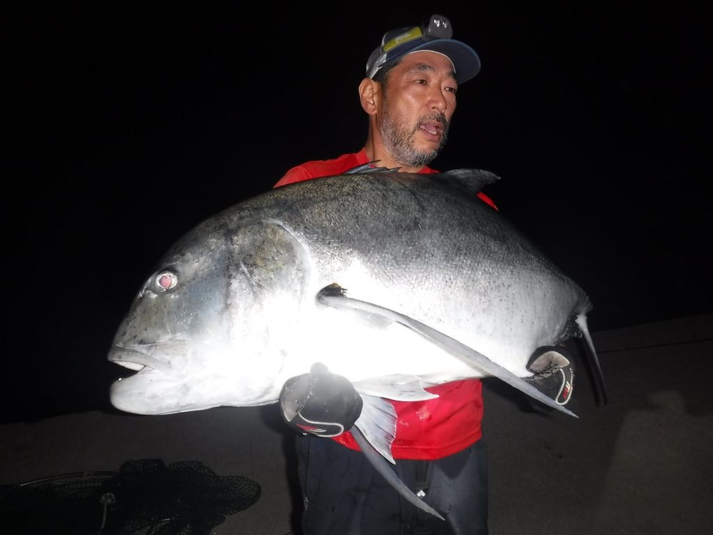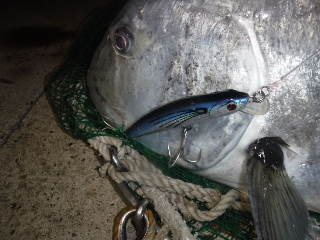 「ストライクプロ・20cmマグナムミノー」で良型のGT(ロウニンアジ)キャッチ!