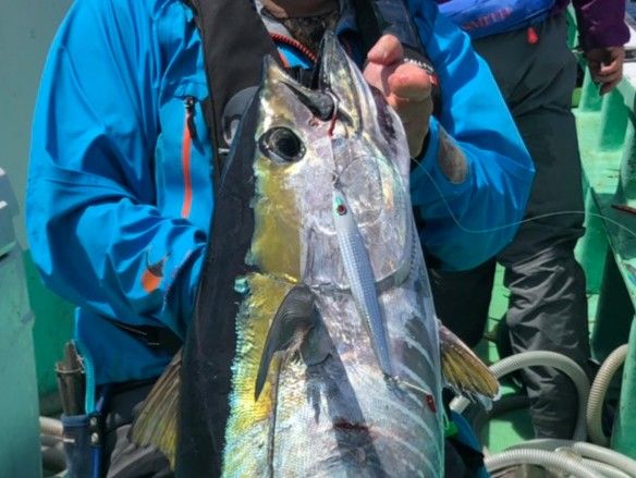 ワイプアウトショート160gマイワシカラーで水深600mほどある場所でタナ100mから30mまでを丁寧に探るのを繰り返し70m付近で喰ってきました。